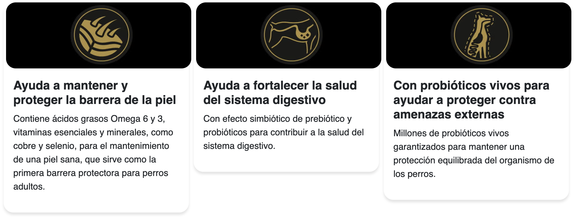 Con Vitamina A , Zinc, Omega 3 y 6 para la piel y el pelaje.